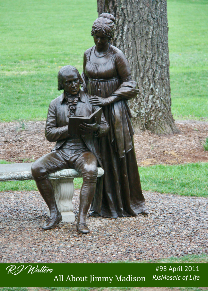 Being a U.S. history nut, I have read several books about Madison, who is one of my favorite heroes, and have visited his humble home in Virginia a couple of times. Where all his founder buddies like Jefferson and Washington had large plantations and slaves, Madison’s home was not so showy. Madison was about 5’6″ where Jefferson and Washington were 6+ feet in heights.