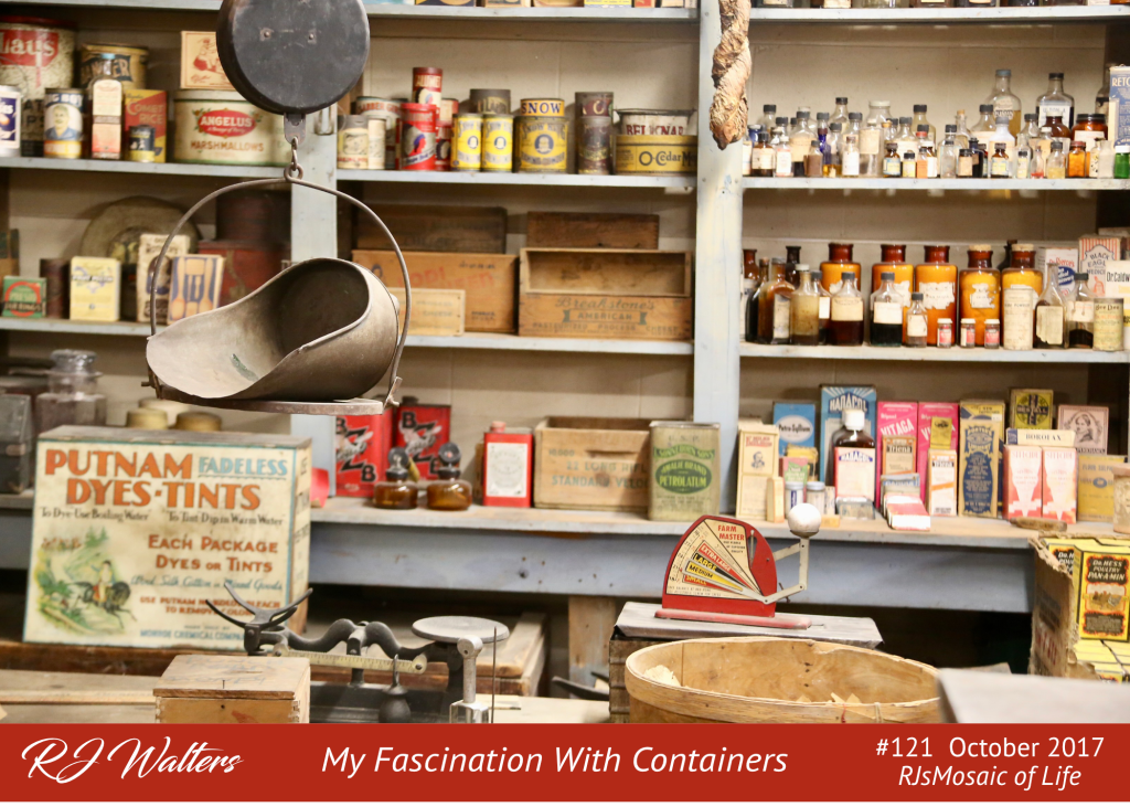 During my travels across America, I have become fascinated with containers found in old-time general stores. This was probably the most complete store shelf I ever ran across. It was in The Museum of Appalachia near Norris, Tennessee. That is one of the top 10 places I have visited.