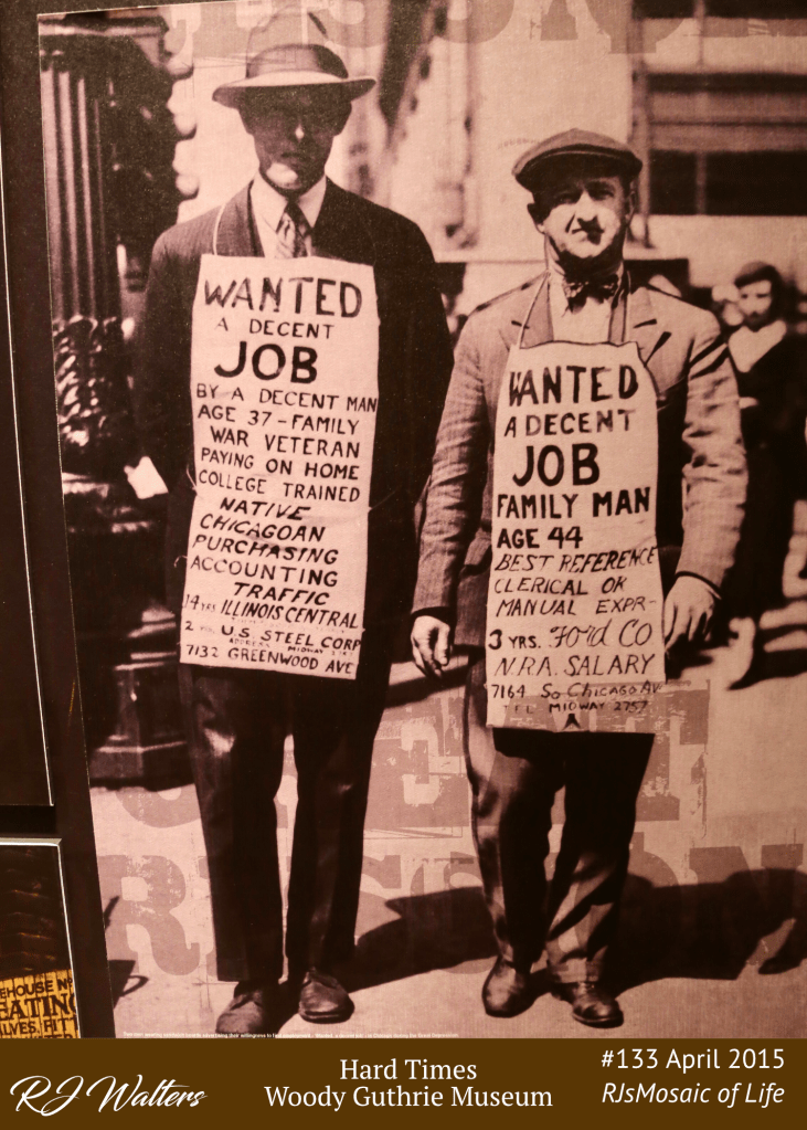 The image here was taken at the Woody Guthrie Museum in Tulsa Oklahoma. It is one of my favorite places. This Land Is Your Land written by Woody should be our national anthem.