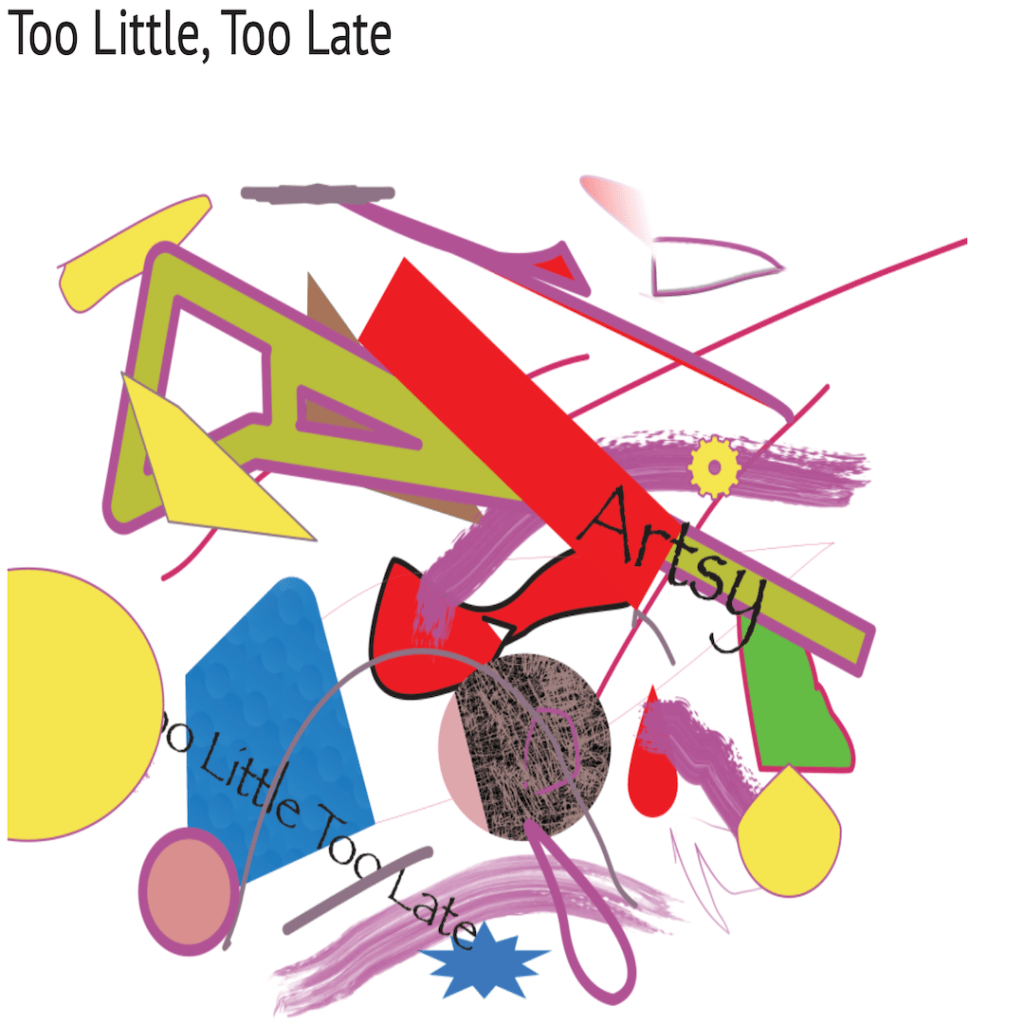 This one came directly from the far reaches of my brain. I have no idea on interpreting it. Yes, it is kinda artsy, but I don’t think it is too little too late at all. Maybe some day my brain will explain it to me.