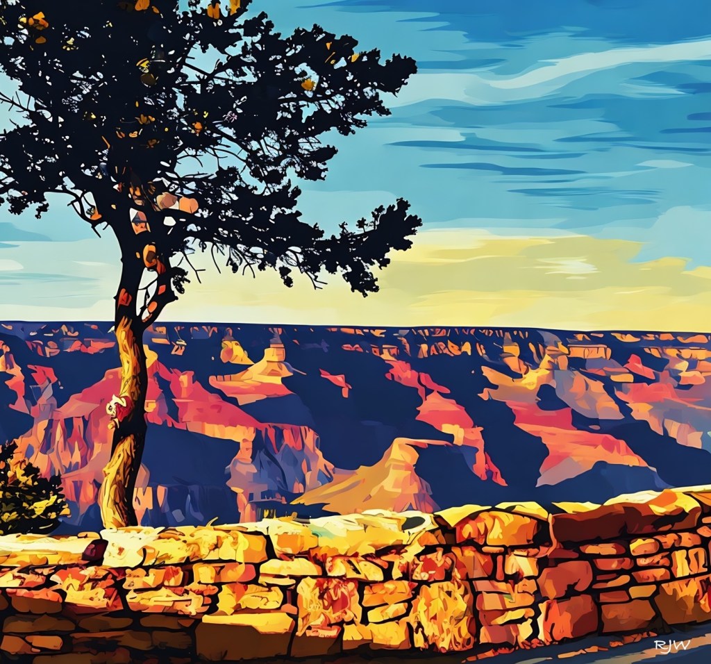 1. This depiction of the Gand Canyon is one of my favorites. All the colors, shadows, and and angles leap off the page, making an amazing vista even more striking
